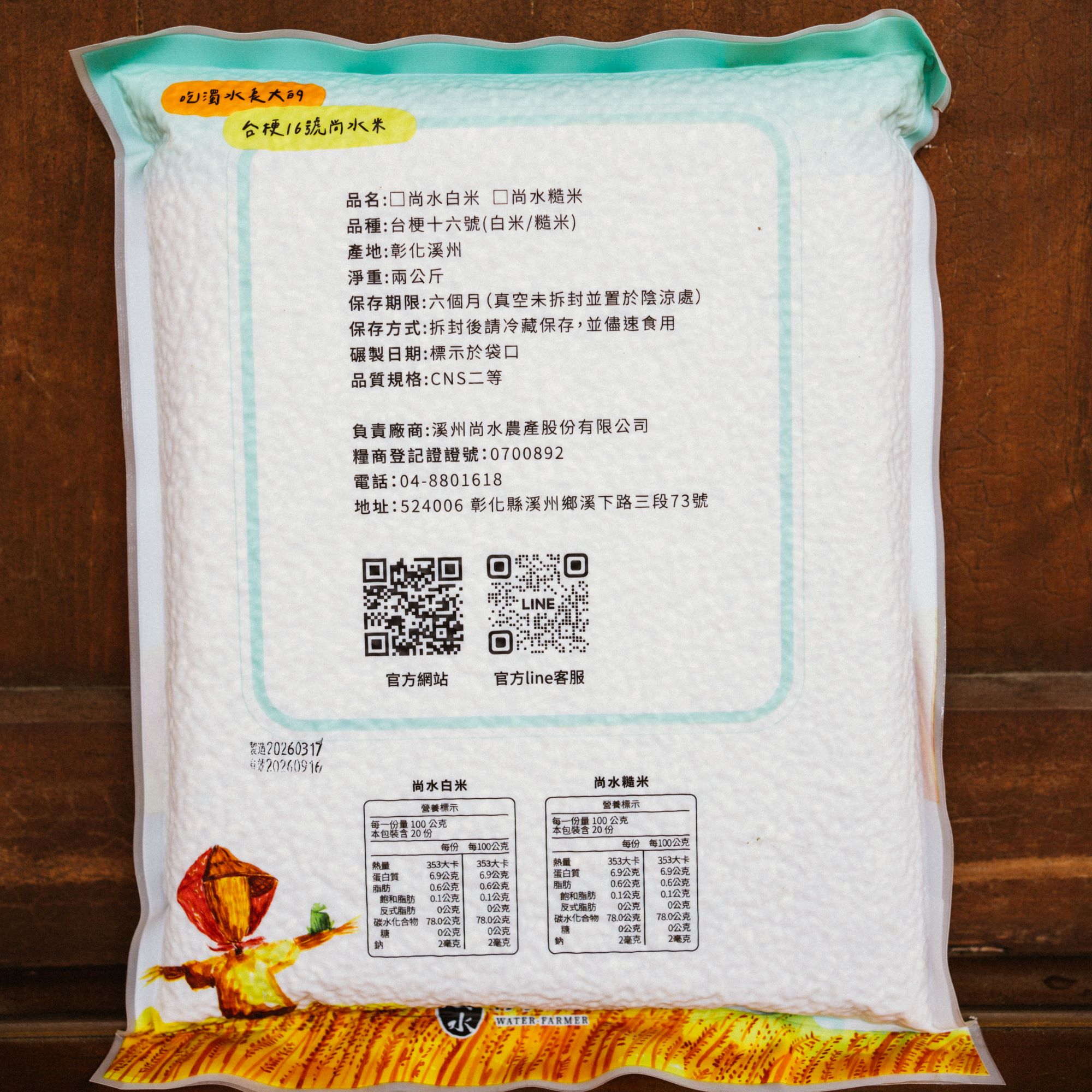 白米易於消化,糙米則多了米糠的膳食纖維等,更為營養。而尚水的糙米,透過精密碾米,既保留住胚芽及米糠內層的營養,也稍微去除掉米糠粗糙的外層,讓您吃的時候口感更好,越咀嚼越香,越咀嚼越健康。